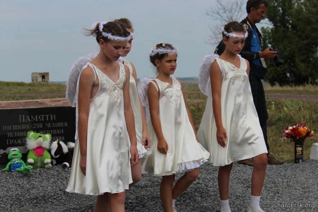 Это фотографии с очередного маскарада, который состоялся вчера — 17.07.2017. Убийцы согнали к месту трагедии людей, раздали им плакаты с надписями «Дайте правду по «Боингу», нарядили ангелами детей. Редкостное по своей мерзости лицемерие.