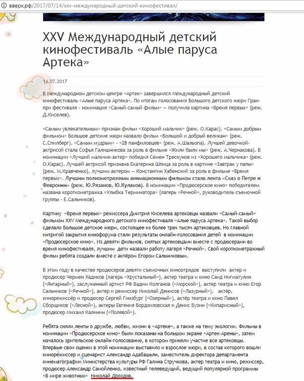 В июне 2017 года Дроздов сознательно нарушил государственную границу Украины, приняв участие в пропагандистских акциях на территории оккупированного Россией Крыма на фестивале "Алые паруса Артека".