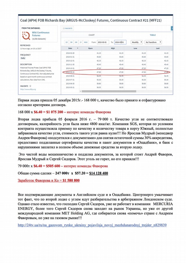 Ну а после налоговой, не сомневаюсь, за дело должны взяться ГПУ, НАБУ и Управление «К» СБУ. Ведь не забываем, что в наступившую «Эру» Фаворов – как и в свое время его предшественник младоолигарх Курченко - всецело пользуется поддержкой власти (Ложкин) и зарабатывает на гос. ресурсах, а это и электросети, и Одесский припортовый, и газовая труба.