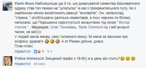 "Ну и мой аккаунт также, не мой. У людей кризис жанра, хаос головного мозга. Им можно по закону о здравоохранении", – заявил Pavlo Nuss.