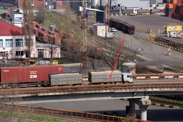 И последнее, на что можно смотреть бесконечно долго в главном парке города Одессы. Это — нескончаемый приток перегруженных грузовиков с зерном, следующих, опять же, в центр города. Тысячи автопоездов, часто с грузом сверх установленной нормы нагрузки, ежесуточно проходят-пересекают город от окраин в самый центр. На фото стрелками обозначены машины с очевидным перегрузом. В добавление к тысячам груженных железнодорожных вагонов. Но вагоны, по крайней мере, не убивают одесские дороги и не так отравляют экологию выхлопными газами... А что такое жить в курортном городе и дышать выхлопами от тысяч перегруженных тягачей, одесситы уже ощущают сполна.