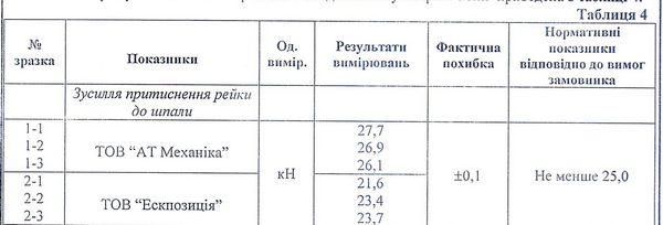 Так вот. Еще с конца 90-х годов этот показатель всегда был не менее 25 кН, и это было результатом многолетних испытаний. Но именно сейчас «Укрзализныця» решила снизить требования с 25 кН до «не менее 20 кН». То есть, железная дорога официально решила покупать менее качественные крепежи, под которые и подогнала требования тендерной документации. И чтобы в этом было еще меньше сомнений, железнодорожники одновременно уменьшили требования к гарантийному сроку крепежа с 5 до 3 лет. Этот термин означает, что уже через три года производитель не гарантирует жизнь своего изделия.