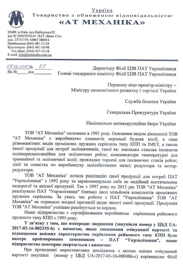 Это письмо обнародовали дилеры продукции Дубневичей «ВМ трейдинг» и «Авант Гард» в составе своих тендерных предложений в текущем тендере. Сейчас трудно сказать, почему у Дубневичей решили сделать явку с повинной, но к экспертизе НАБУ есть еще и фактическое признание самих железнодорожников.