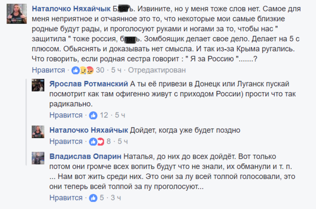 Доброволец АТО также отметил, что для Украины такие события будут означать увеличение линии фронта. «В каком шикарном катле мы окажемся, где до Киева километров 200 всего!!!», — добавил он.