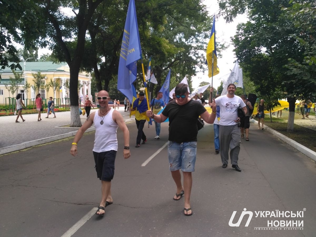 Активисты пронесли по городу 50 метровый национальный флаг. Во время шествия они скандировали лозунги "Iзмаїл - це Україна", "Слава Українi", "Одна, єдина, соборна Україна!".
