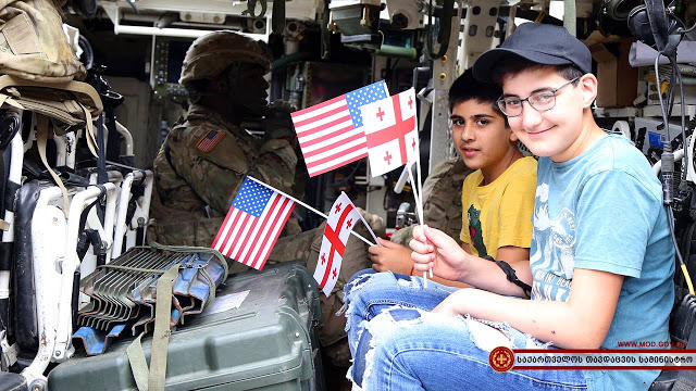 Вторая колонна американской бронетехники, которая прибыла в государство в рамках международных учений Noble Partner 2017, прошла всю страну маршем от Поти до Визиани, останавливаясь в больших городах для демонстрации техники местным жителям.