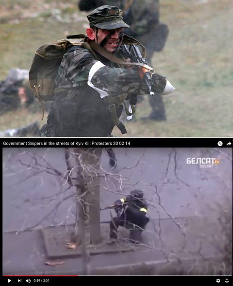 Дмитрий Садовник на учениях и Дмитрий Садовник стреляет на Майдане (сверху вниз). Источник: e-news.su, кадр из видео