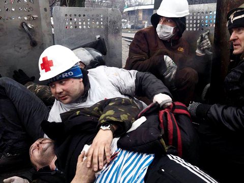 Иван Раповой, раненый на Институтской улице 20 февраля 2014 года (в тельняшке) Фото: Евгения Закревская / Facebook