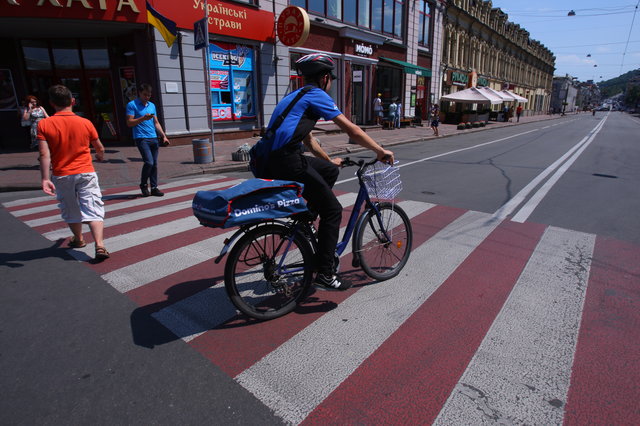 Сагайдачного. По привычке люди пересекают улицу по "зебре". Фото: Анатолий Бойко, "Сегодня"