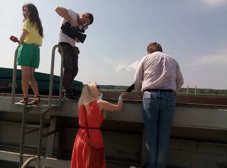 Журналисты раньше грузчиков бросились на штурм украинской "баржи года". Фото - Страна.ua