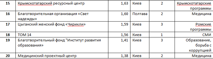 Если учесть падение курса национальной валюты с 8 до 25 грн./дол, то можно оценить объем финансирования проектов фонда в 2016 году в сумму 7 млн. долларов, что приблизительно соответствует уровню прошлых лет.