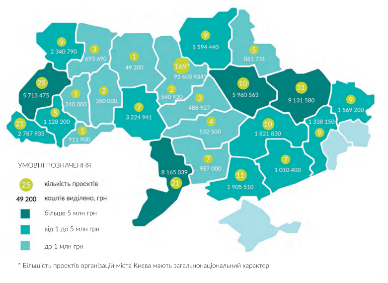 Согласно отчету, в 2016 году фонд Сороса раздал грантов на 176 миллионов гривен. Это меньше, чем 200 миллионов, потраченных в 2015 году. Но это намного больше, чем в 2014 году (103 млн. грн.) и в 2013 году (50 млн. грн.).