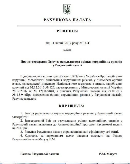 Глава Рахункової палати України Роман Магута, ключової структури держави, яка забезпечує контроль над цільовим використанням державного бюджету, з ближнього оточення сім’ї Януковича і мінфіна Арбузова. Магута загруз в корупційних схемах, однак як і раніше очолює стратегічний об’єкт, який знаходиться в режимі суворої секретності.