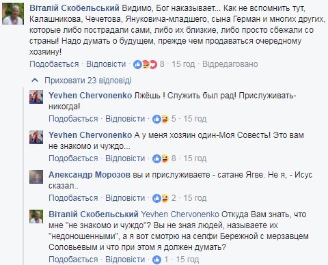 "Увидел полный злобы и ненависти пост внешне красивой девочки Нади с абсолютно змеиным нутром, другие посты "радости» убогих, злобных, неудачных, ленивых на диванах, винящих во всем всех, кроме себя, и вонюче лживо обливающих грязью!" - подчеркнул Червоненко.