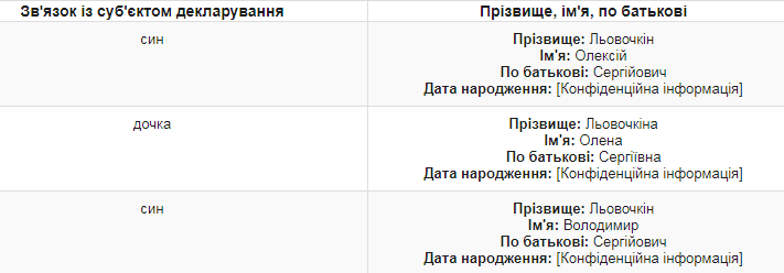 Зокрема, Львочкін не зазначив у декларації за 2016 рік свою дружину – художника і модельєра Зінаїду Ліхачову. Серед родичів політика у документі фігурують лише два сини екс-голови адміністрації – Олексій та Володимир – і донька – Олена. Згідно з документом, члени родини Льовочкіна доходів за 2016 рік не мали.