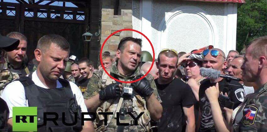 На этом фото 25 мая 2014 года у резиденции «Люкс» в Ботаническом саду Вадим Погодин находится рядом с будущим главой «ДНР» среди защитников имущества Ахметова.