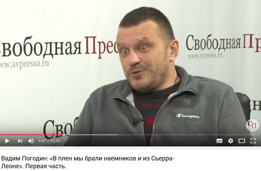В первом публичном интервью (от 25 ноября 2014 года) он несет чушь о наемниках из Сьерра-Леоне, которых «брал в плен своими руками». Травит байку о том, как Гиркин доверил ему охранять 45 км «границы ДНР» с 30 «шахтерами», которые добыли ружья в оружейном магазине: