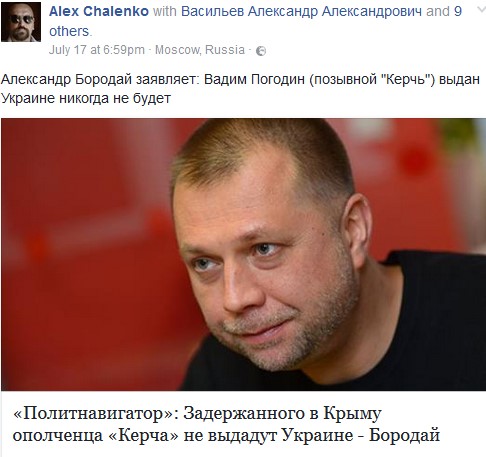 Показательно, что именно террорист с позывным «Хмурый» (Сергей Дубинский, который был заместителем министра обороны «ДНР», возглавлял т.н. «ГРУ ДНР») больше всех переживал о том, чтобы Керча не выдали Украине. Об этом проговорился вышеупомянутый экс-лидер «Донецкой республики» Бородай, попутно давая понять «героям Новороссии», что «Керча» никто и не собирался экстрадировать: «Керча не выдадут. Я никогда бы не стал публично говорить на эту тему, если бы меня не обзвонили все, кто только мог, включая Хмурого и самого Керча», — заявил Бородай.