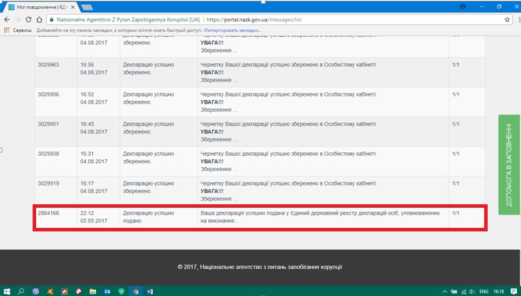— Вы вообще знаете, как заполняется эта электронная декларация? Вы представляете, что я вместе со своим юристом 4 дня сидели и 4 дня создавали какой-то виртуальный кабинет..., потом какой-то электронный цифровой пидпыс на какую-то флешку сбрасывали. Я мучился 4 дня. А там система какая — если ты один из пунктов упустил, то у тебе декларацию она не принимает. Ты не можешь перейти к заполнению следующего пункта. Я это уже изучил, мне программа выдает ответ, что «Вы успешно задекларировали все ваши вопросы» — у меня есть скриншот... В итоге, я одним днем ее заполнил, а она туда пришла спустя несколько суток в извращенном виде. И самая большая проблема, что я сейчас ее не могу заполнить. Я по этому поводу был уже в экономической полиции, дал пояснения, принес полностью копии документов тех вещей, которые мне принадлежат. Я их предоставил вниманию наших правоохранительных органов, — розповідає лікар і надає копію скріншота.