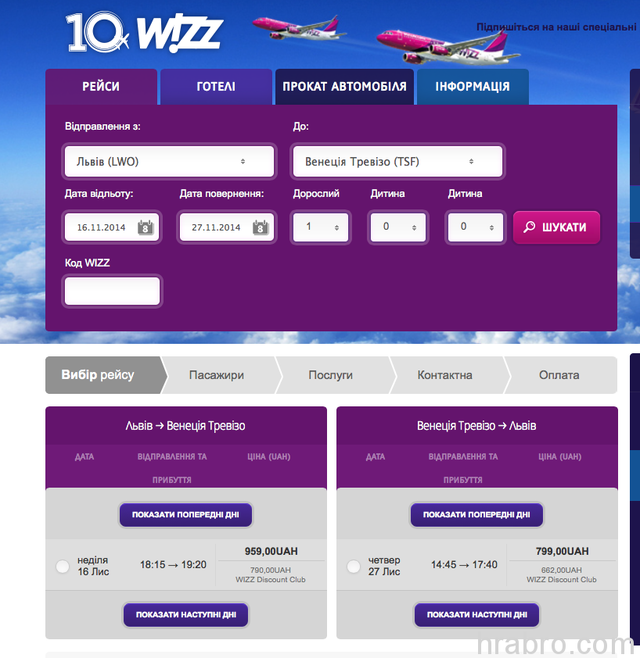 На скриншоте: перелет Львов – Венеция за 1750 грн в оба конца. Дешевле перелета Одесса – Киев.