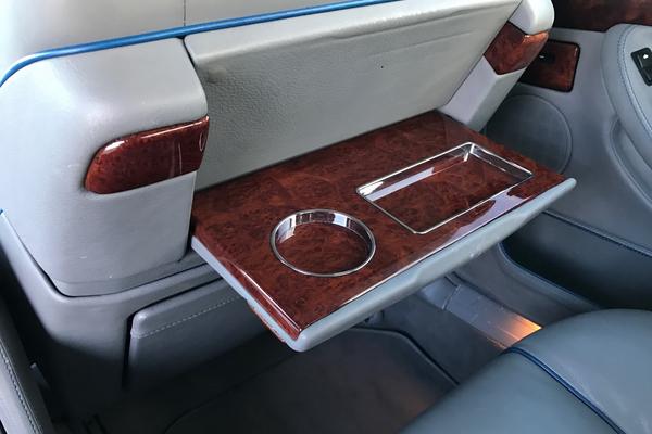 Отличить Alpina B12 можно по скромному аэродинамическому обвесу и особым литым дискам. В салоне изменена отделка, установлены телевизор с видеомагнитофоном, телефон и откидные столики для задних пассажиров.