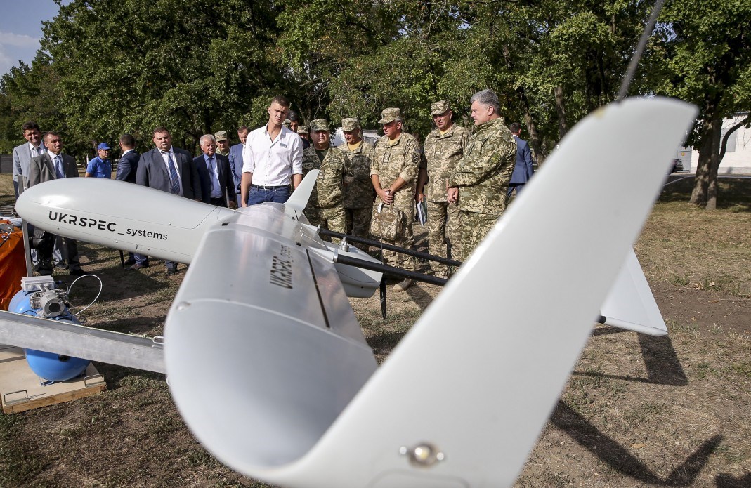 Президенту Украины Петру Порошенко во время посещения одной из воинских частей Вооруженных сил Украины в Кировоградской области продемонстрировали образцы новых беспилотников.