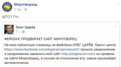 Теги: ФейсбукОлег ЦаревСайт Миротворец