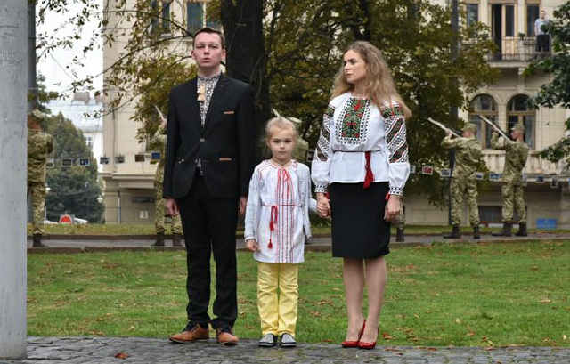 Юрий Гуртяк защищал независимость Украины более двух лет и погиб 11 июля 2016 года, подорвавшись на мине под Марьинкой Донецкой области. Его дочь и супругу Надежду Гуртяка специально пригласили областные руководители во Львов в честь Дня Флага.