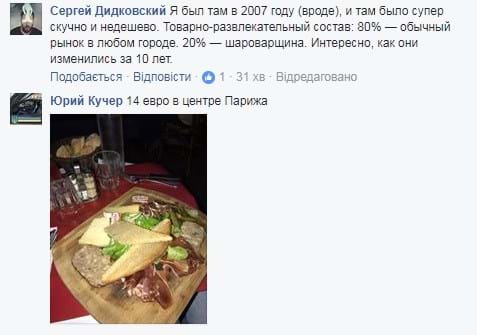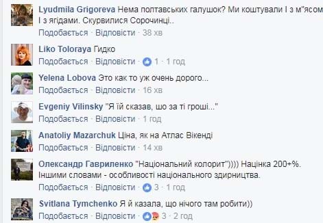 "Кто там говорил, что на Сорочинской ярмарке цены, как в Киеве? Ложь! Выше. Три кусочка мяса и немного овощей в пластиковой посуде под открытым небом 360 грн", - отметил Марченко.