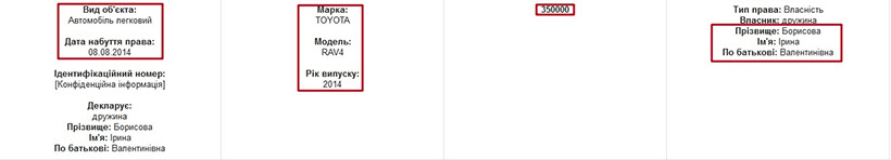 Ми вже звикли до того, що прокурори, які, судячи з декларації, живуть на одну зарплату, мають успішних та багатих членів родини. Проте вперше найбагатшим членом родини прокурора виявилася 2-річна дитина. Відкритим залишається не тільки питання мотивації прокурора Борисова переписати майно на дитину, але й те, звідки у людини, яка все життя працювала виключно на державних посадах, кошти на такі цінні подарунки.