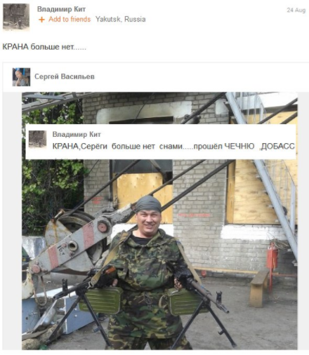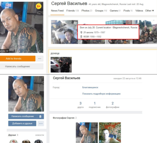 "Рашист Васильев Сергей Кириллович "Кран" (Благовещенск, 28/07/72) стал груз 200 ~24/08/17, вероятно не на Донбассе", - сказано в сообщении.