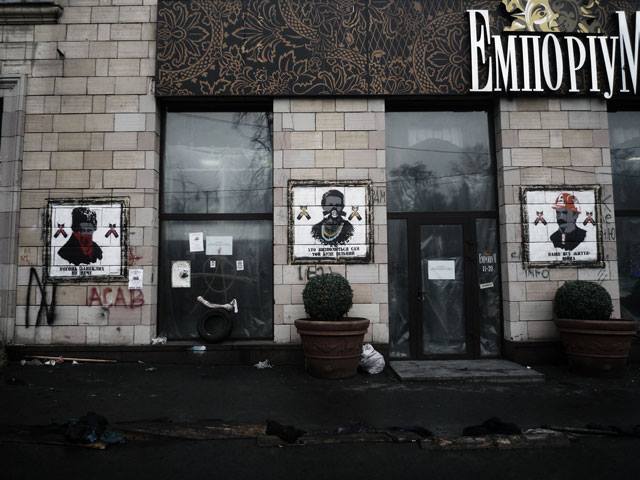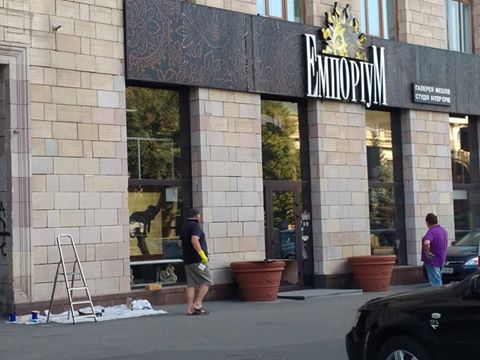 В Киеве смыли патриотические граффити с магазина на на улице Грушевского, которые были нарисованы еще во времена Евромайдана.