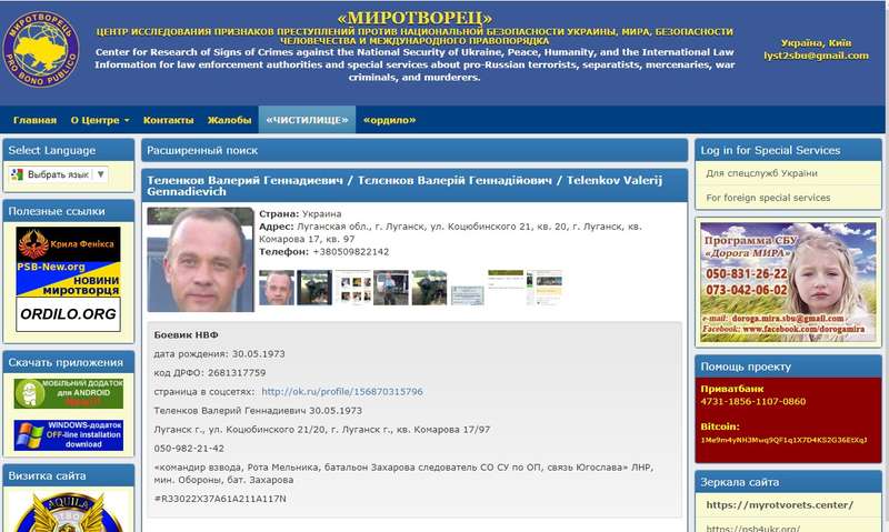 Среди украинских солдат ходит слух, что в Луганске, кроме «волонтеров» из спецслужб РФ, пленных и перебежчиков на полиграфе проверяет некая дама из местных. Учитывая, что полиграфологов мало, попробуем выяснить кто же это может быть? Гугл на запрос о женщине-полиграфологе из Луганска дает прямой отсыл к такому специалисту: Мазейкина Валерия Павловна, 14.09.1979 г.р., когда-то проживала: г. Луганск, ул. Градусова, 4/117.