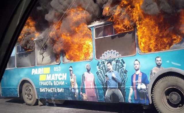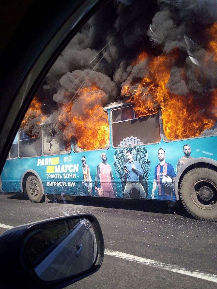 По словам очевидцев, сначала с него пошел дым, а затем из транспортнго средства полыхнул огонь.