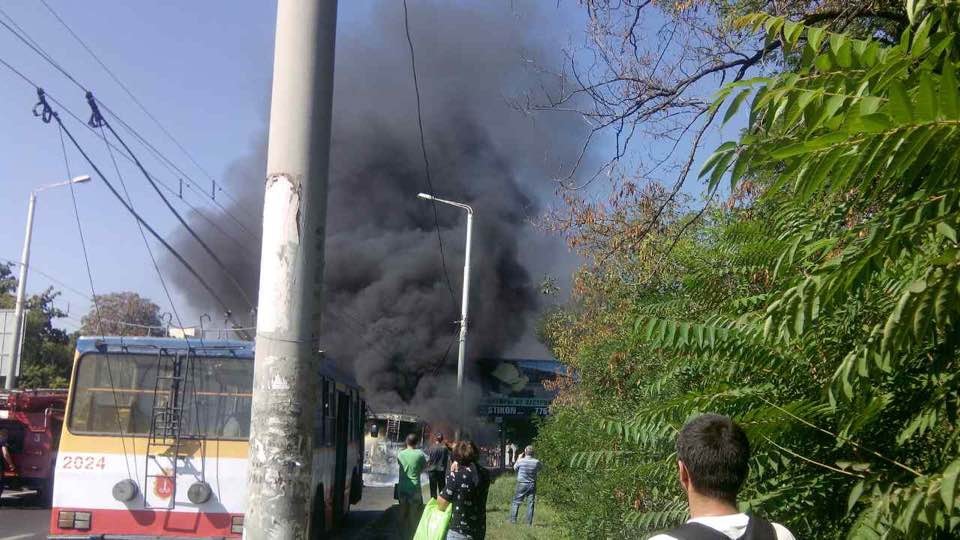 В Одессе на ул. Грушевского, на остановке недалеко от центрального автовокзала сгорел троллейбус.