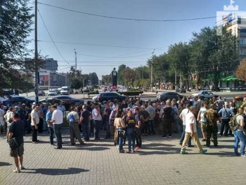 После драки с водителем маршрутного такси, бойцы АТО вышли на акцию протеста и перекрыли центральный проспект Запорожья