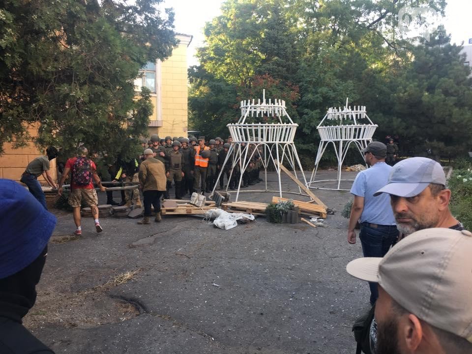 Сейчас под зданием Черноморского горсуда, который оправдал и освободил пророссийских боевиков, причастных к организации трагедии 2 мая в Одессе, возводят баррикады.