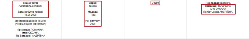 Среди авто в собственности прокурора находится Nissan Tiida 2008 года выпуска, приобретенный в том же году. Указанная в декларации стоимость авто - 70 тыс. грн. На момент приобретения этого автомобиля Оксане Ломакиной было всего 23 года.