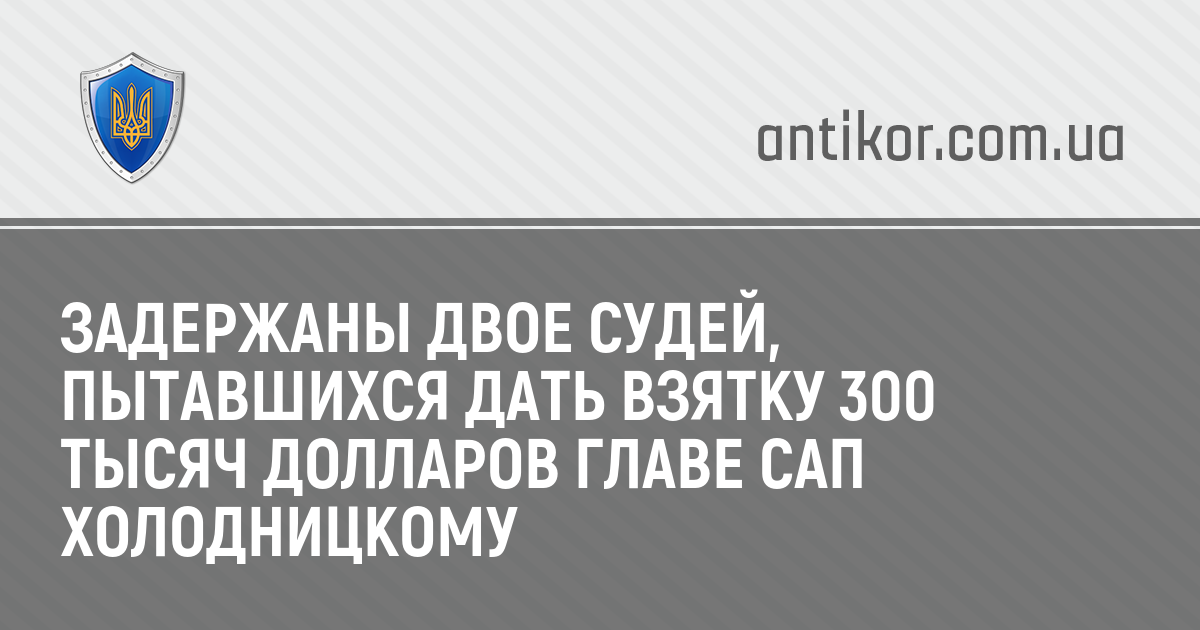 Задержаны двое судей, пытавшихся дать взятку 300 тысяч долларов главе САП Холодницкому