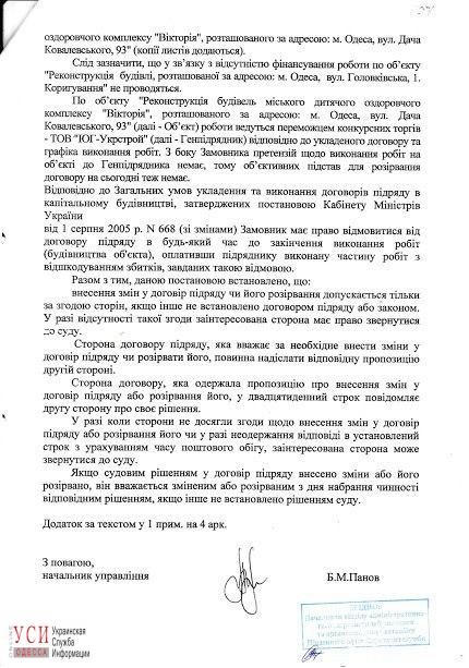 Тендерная документация также была оформлена с нарушениями. Мэр Одессы Геннадий Труханов все эти факты проигнорировал и доверил сомнительным компаниям реконструкцию лагеря.