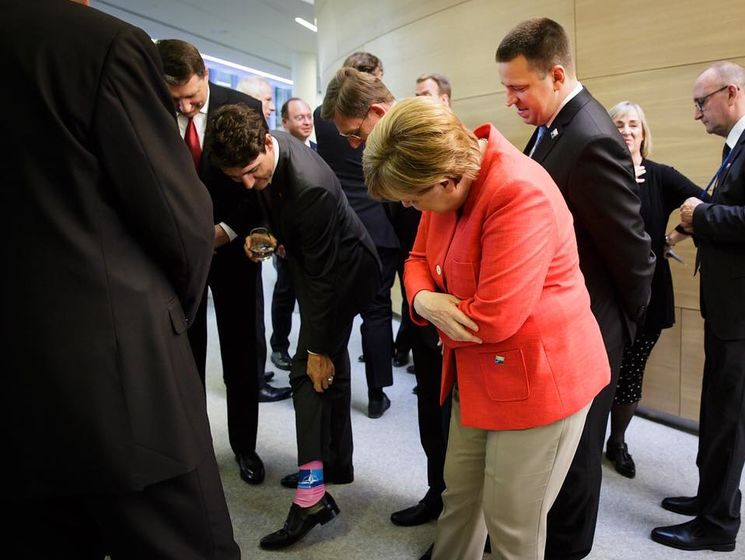 Такими різнокольоровими шкарпетками із символікою НАТО Трюдо здивував канцлера Німеччини Ангелу Меркель.