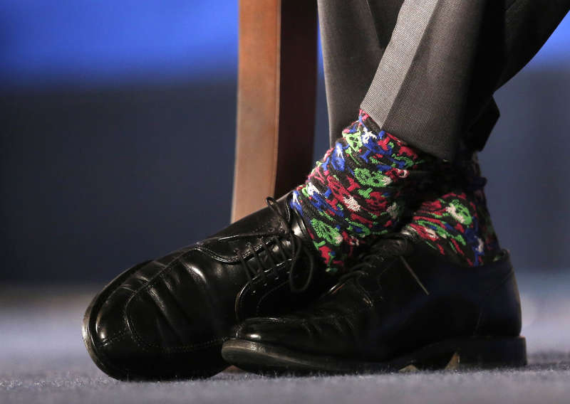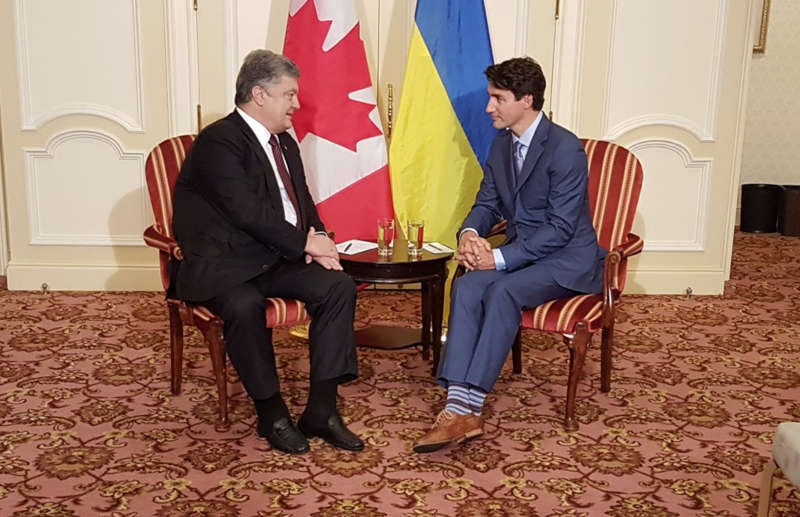 А сьогодні під час зустрічі з Президентом України Петром Порошенком у Торонто він вдягнув світлі шкарпетки у смужку. І щоб це могло значити?