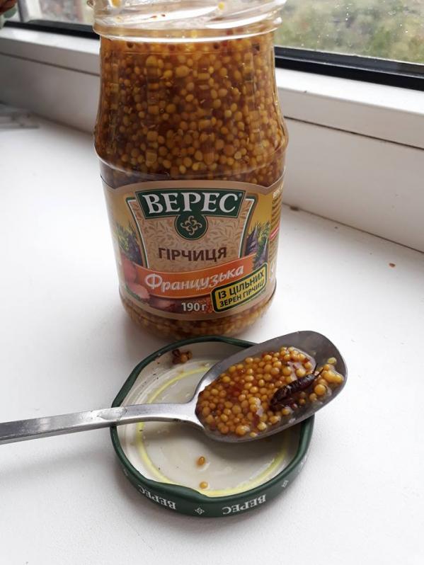 В соцсетях опубликовали фотографии банки горчицы торговой марки "Верес" с насекомым внутри.