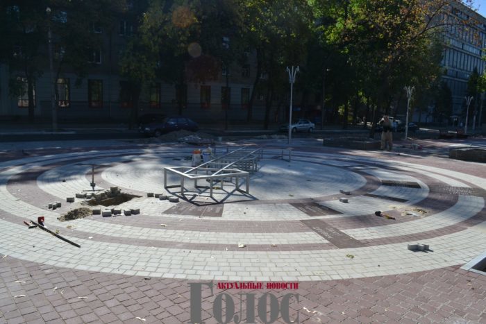 В Запорожье отреставрированную площадь Маяковского украсили указателем дорог в виде компаса, на котором были неправильно написаны украинские города.