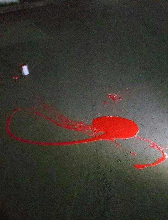 В ходе импровизированной акции протеста активисты подготовили обращение к Умерову и оставили перед посольством России пятно красной краски. По и словам, она символизирует пролитую Кремлем кровь.