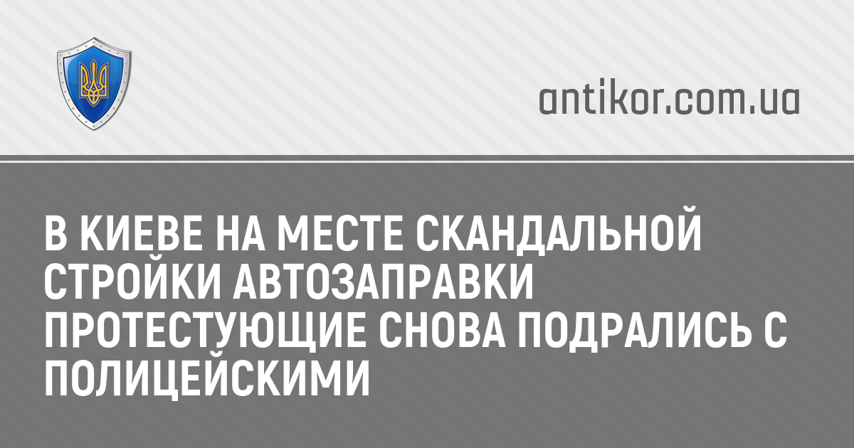 В Киеве на месте скандальной стройки автозаправки протестующие снова подрались с полицейскими