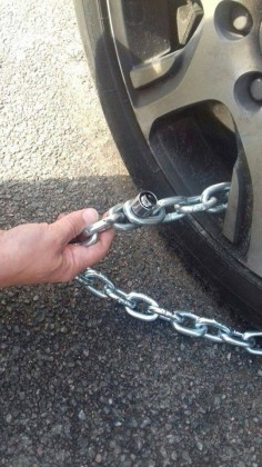 Автоледи столкнулась с новым способом авторазвода: на колесо авто надели металлическую цепь и и закрутили автомобильную секретку в приваренную к звену цепи гайку.