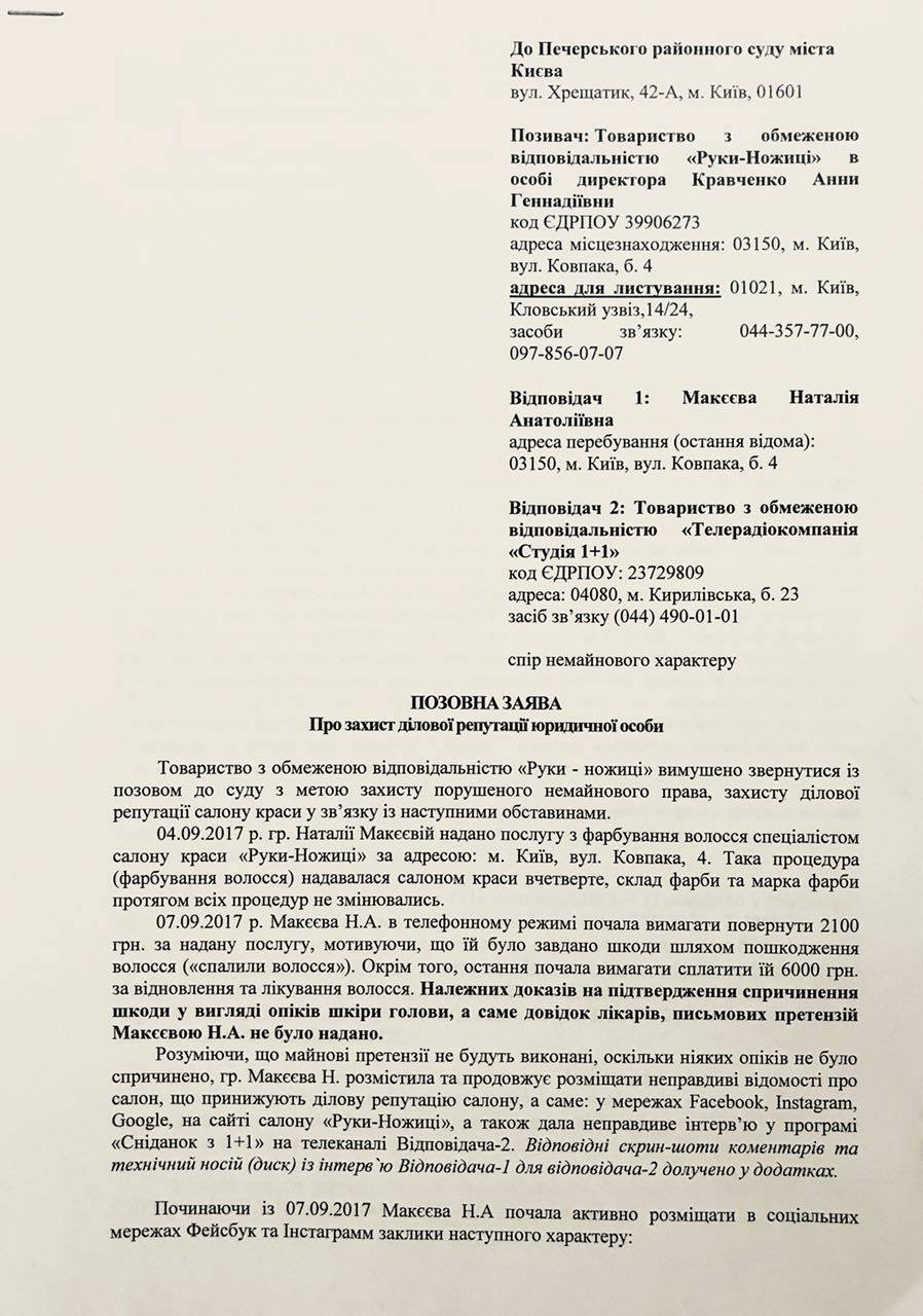 О чём это говорит? Журналисты телеканала «1+1» в поиске сенсаций наткнулись на новость о недобросовестных работниках салона красоты и несчастной жертве. Но в итоге только посодействовали «аферистке», которая несколько раз указала ложные данные и продолжила безосновательно требовать у салона деньги.