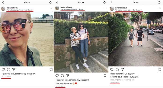 Скриншоты из instagram Натальи Макеевой за период с 15 по 16 сентября 2017 года
