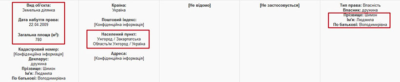 Також дружина має 3 земельні ділянки у селах Невицьке, Ботфалва та в Ужгороді. Загальна їхня площа – 25,8 соток.